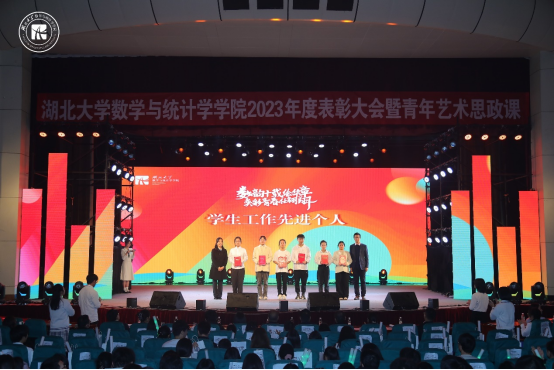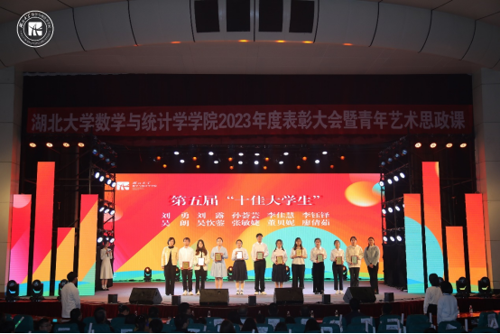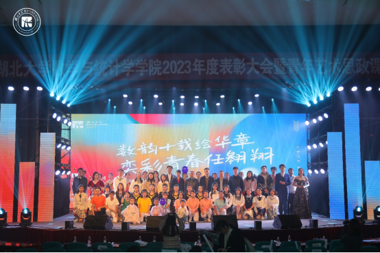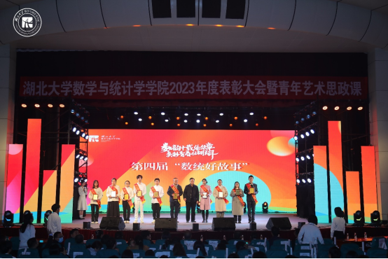 表彰大会开始前,曾祥勇院长上台致辞讲话,回顾了学院筚路蓝缕的发展史,并列举学院近年来取得的成就,他认为,今天的数统是赓续初心使命的数统,是梦想照进现实的数统,更是充满生机活力的数统,最后他希望学院师生可以用实干成就梦想,用创新引领发展,用奋斗缔造幸福,成就数统更好的明天。随后,进行了校级及以上获奖团队及个人颁奖、学生工作先进个人颁奖、学院学业优秀集体及个人颁奖、学院第五届“十佳大学生”颁奖、第四届“数统好故事”颁奖等颁奖环节,获奖者与领导老师合影留念。