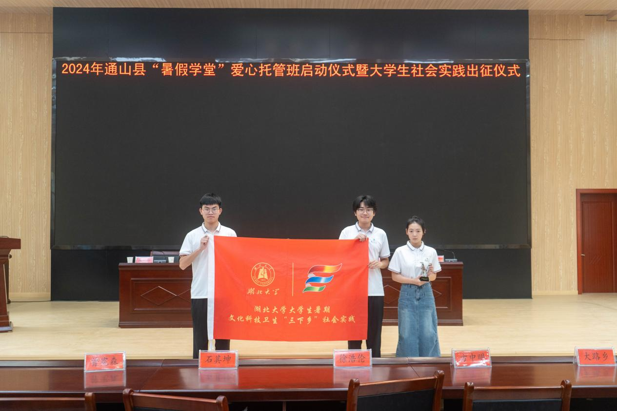 (通讯员唐国栋)7月8日上午,2024年通山县“暑假学堂”爱心托管班启动仪式暨大学生社会实践出征仪式于通山县人民政府顺利举行。相关单位负责人,我院小书童支教团代表与湖北省高校志愿队伍代表参加会议,会议由通山县团委书记邱莉莉主持。
