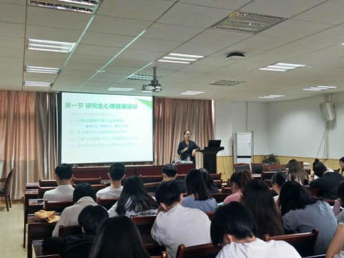 2024年10月15日19时,由我校心理健康中心的张玥老师主讲的以“研究生压力应对与情绪管理”为主题的心理健康讲座,在数统学院201学术报告厅准时开始。我院2023、2024级全体研究生积极地参加了本次讲座。