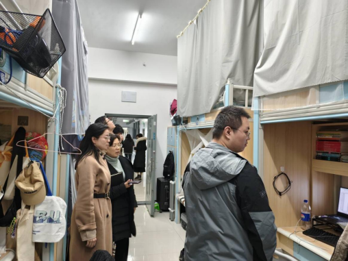 12月11日,学院召开班主任工作会议,就学生安全教育管理工作进行了专题部署。会后,黄江英带领班主任深入学生寝室,开展宿舍安全教育检查工作,重点排查大功率违规电器、电线老化及消防通道堵塞等隐患。在学生宿舍,黄江英与学生亲切交流,深入了解同学们的学习生活状况,对构建安全、舒适的生活环境提出了具体要求。
