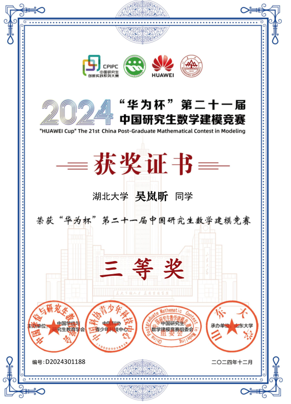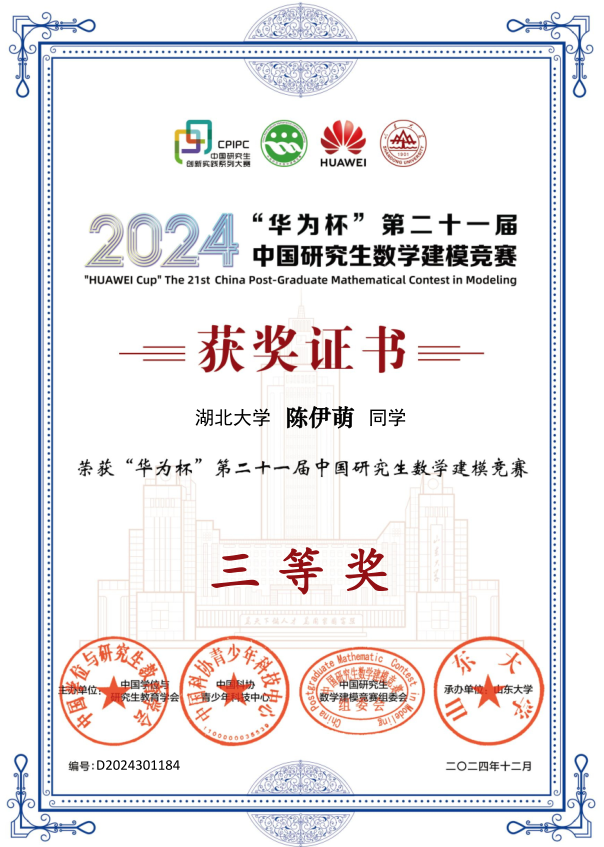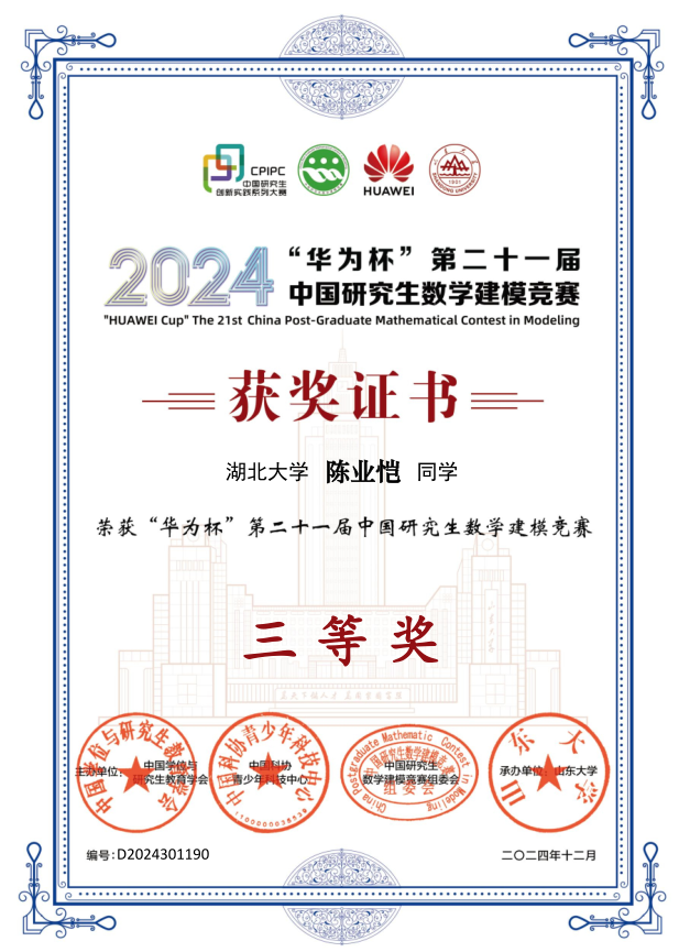 日前,2024年全国大学生数学建模竞赛和研究生数学建模竞赛结果揭晓。我校学子在全国大学生数学建模竞赛中共获得全国二等奖1项、省一等奖5项、二等奖12项、三等奖21项;研究生数学建模竞赛获国家三等奖3项。