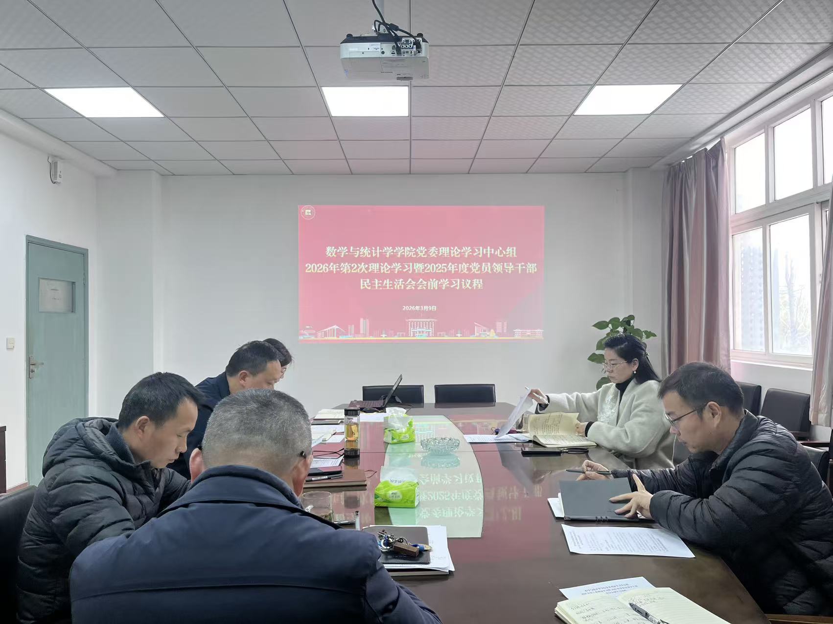3月9日下午,学院在二楼会议室召开2026年第2次党委理论中心组学习暨2025年度党员领导干部民主生活会会前专题学习会。学院领导班子成员、党委委员参会,院党委书记黄江英同志主持会议并总结讲话。