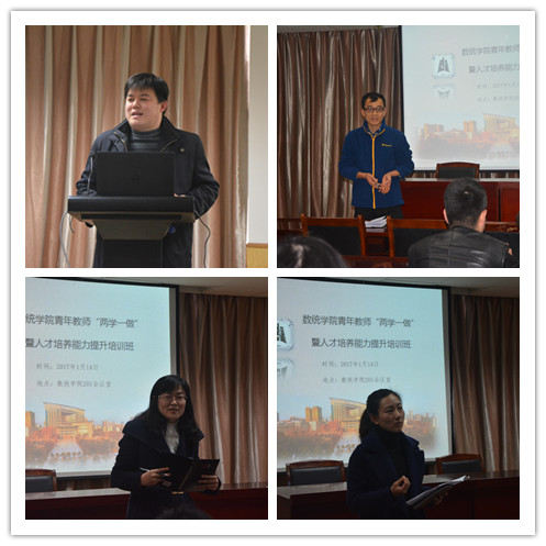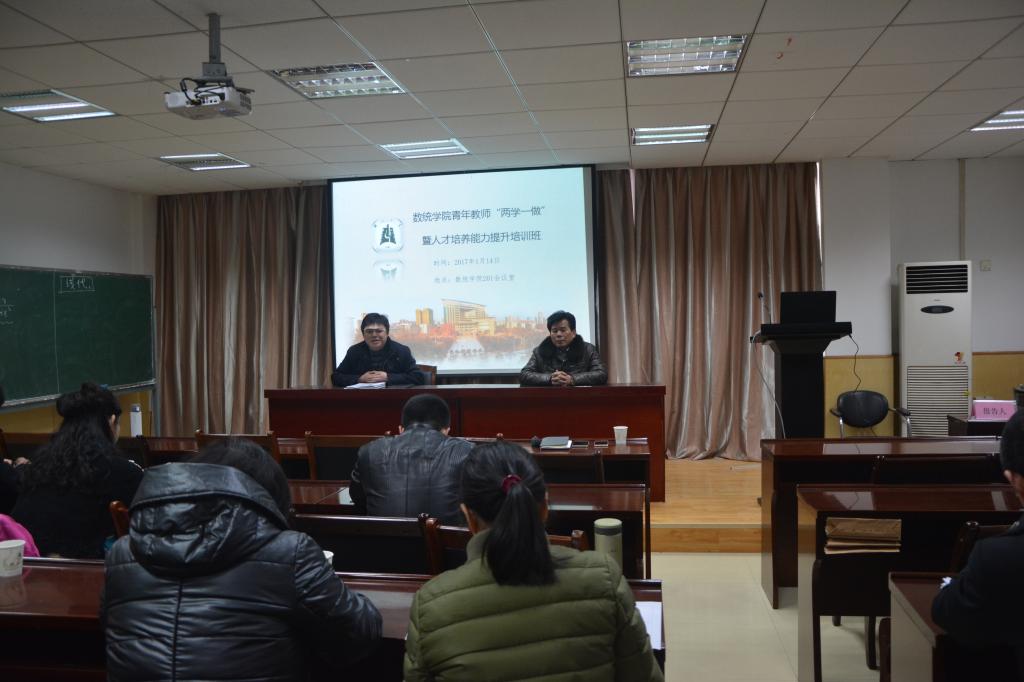 2017年1月14日,数统学院举办了青年教师“两学一做”暨人才培养能力提升培训班。院党委书记游春林、院长曾祥勇、全体班主任、全院40岁以下教师参加培训班,培训班由院党委副书记陆伟主持。