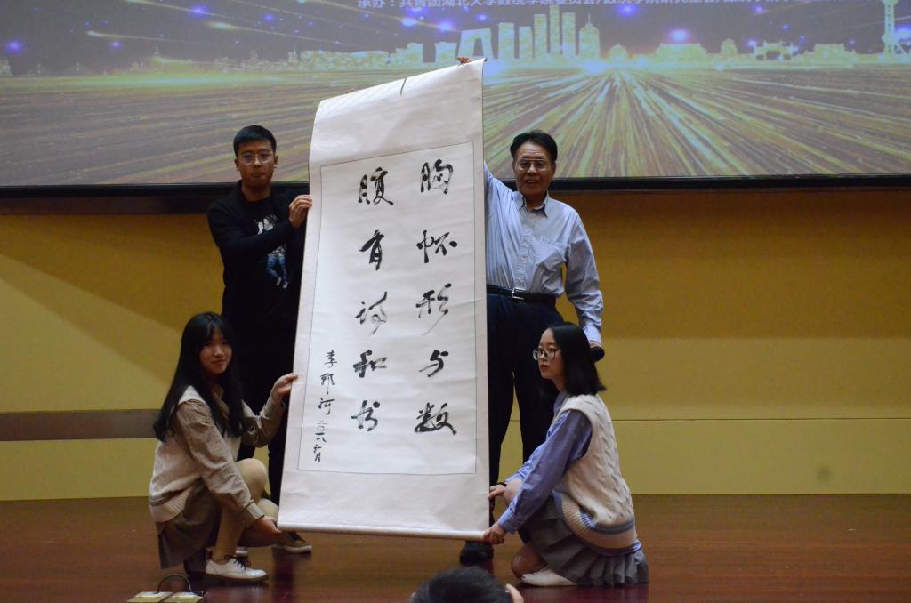 在开幕式上,李邦河院士为数学文化节题词“胸怀形与数,腹有诗和书”,鼓励学生们做数学领域里的英雄。高小山院长通过介绍数学在实际生活中的应用,勉励广大学子要学好数学。侯勇进行了总结发言,他对湖大学子提出三点希望:一是学习数学思维,培养数学素质。二是聆听大师思想,感受数学文化。三是志存高远,脚踏实地,无悔青春。