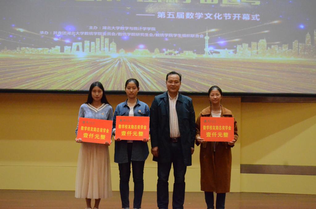 开幕式上还颁发了数学校友励志奖学金。同时,首次发布了数学文化节logo和相关文化产品,并在开幕式上进行展示,由侯勇和高小山揭牌。