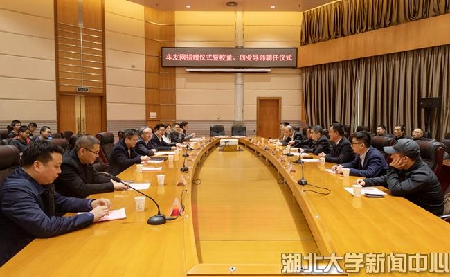 车友网董事长邢光磊、执行总经理王琨、副总经理乐睦,武汉华银百汇科技有限公司总经理张新伟,武汉先歌科技有限公司董事长柳海涛等企业嘉宾,365英国上市公司校长谢红星,学校办公室、宣传部、招生就业处、合作发展处负责人,英国365集团师生代表出席捐赠聘任仪式。副校长钱建国主持仪式。