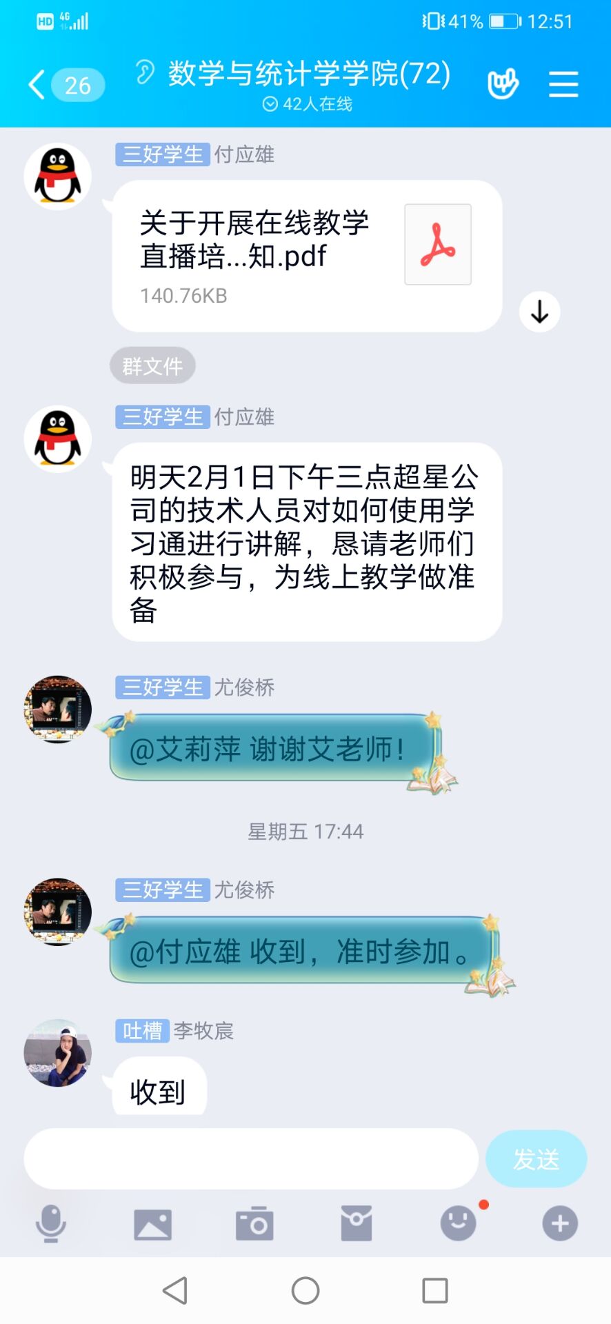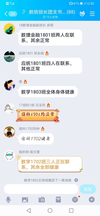 针对学生,学院要求班主任、导师及时了解本科生、研究生状况,实行“一日一报”。对未能回家的学生,与其家人密切沟通,随时掌握学生身体状况。学院还及时将《365英国上市公司关于延迟2020年春季开学时间的通知》《关于进一步做好研究生导师疫情防控工作的通知》等文件传达到每一位师生,确保人人知晓。根据学校统一要求,学院组织教师积极准备在线授课,督促导师对学生毕业论文早关注,严格把控论文质量,确保学生学业不受疫情影响。
