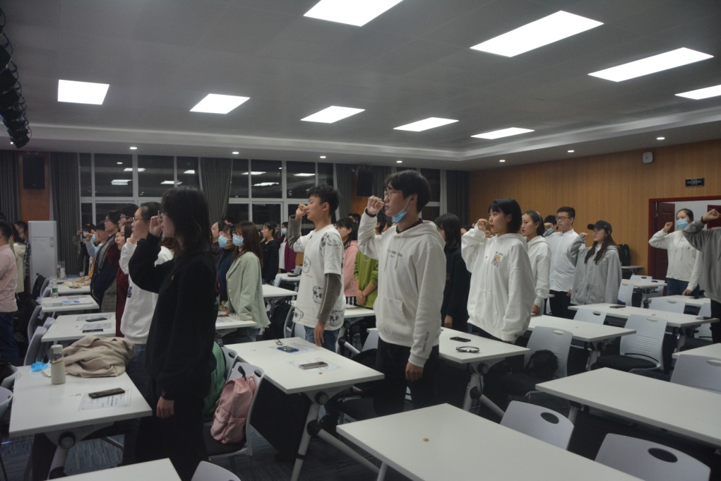 第七届学联会主席李天琪在讲话中表达对老师及第六届学联会学姐学长的感恩与感谢,希望第七届学联会全体成员握紧拳头、凝心聚力,为学联会的跨越发展奋力一搏,把自己的青春书写在数统学院学联会的发展史册上。