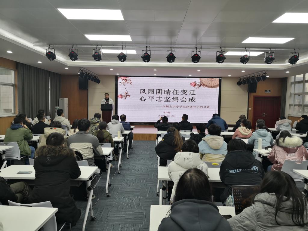 2020年12月17日下午,数统学院邀请到我校1993级数学系校友,现任广东乌守道科技有限公司董事长李华峰,于数统院八楼报告厅为我院学生开展《风雨阴晴任变迁,心平志坚终会成》的讲座,本次讲座由我院党委副书记陆伟主持。