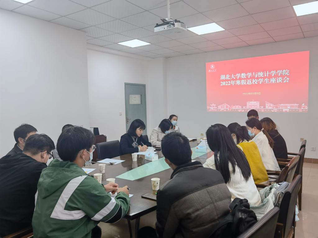 为推动“一线学生工作法”走深走实,加强师生之间的联系与交流,进一步了解学生思想动态、交流假期见闻和感受,更有针对性地做好新学期学生思想政治教育工作,数统学院于2022年3月9日在205会议室召开寒假返校学生交流座谈会。学院党委副书记何肖、信息与计算科学系主任彭江涛老师、数学与应用数学系主任廖军老师、应用统计系主任刘展老师、教学办老师张凌、学工办老师陈慧以及学生代表等参加会议。