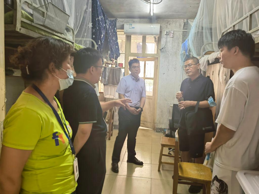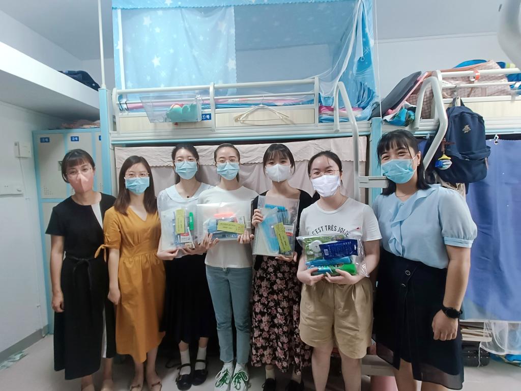 走访期间,党员干部仔细询问学生留校期间学习和食宿情况,并给学生送上“十个一”降温礼包,在关注大家学习的同时,也提醒大家注意劳逸结合、确保身体健康,强调留校期间的安全注意事项,并做到信息保持畅通,动向及时上报。每到一间学生寝室,教师党员干部都认真仔细地查看寝室是否整洁,配置的物品是否齐全,是否存在安全隐患,并叮嘱宿舍工作人员要做好疫情防控及宿舍卫生清洁工作,努力为同学们创造一个整洁、舒适、温馨的住宿环境。同时希望同学们养成良好的生活学习习惯,做好个人疫情防控和宿舍安全、卫生工作,营造整洁高雅、温馨和睦、健康文明、勤奋向上的寝室环境。