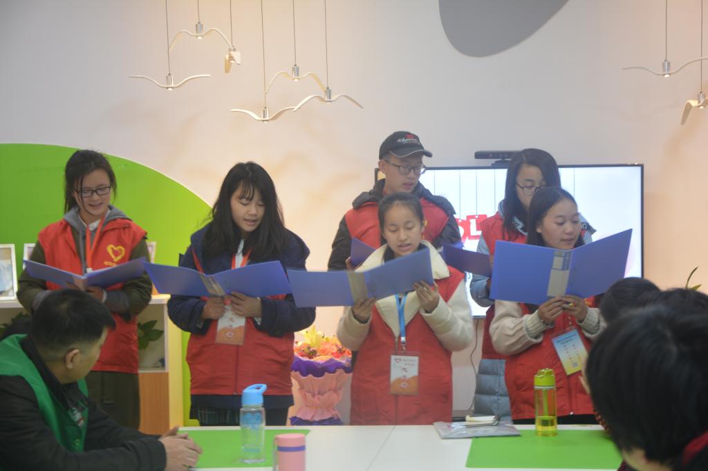 活动开始后,学工办老师向徐家棚阳光家园全体社工赠送了鲜花和红围巾等节日礼物,向社区工作人员传递了志愿者们的亲切问候。随后主持人向大家简短的介绍了志愿者日节日史,接着由阳光家园方俊明园长、数统学院学工办老师,志愿者代表分别发言,引入主题,活动正式开始。